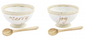 2-piece set. Speckle glazed stoneware dip bowl with hand-painted detail. Comes with wood spoon. - Additional Information
