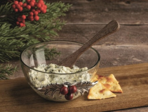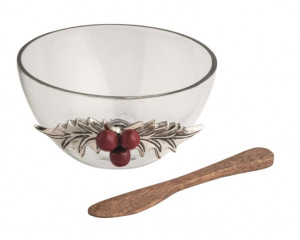 2-piece set. Glass tidbit bowl with cast aluminum holly attachment. Comes with wooden spreader. - Additional Information