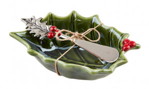 2-piece set. Hand-painted stoneware tidbit bowl. Comes with metal spreader with cast aluminum holly handle. - Additional Information