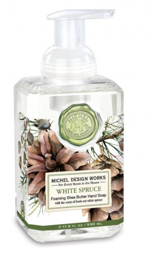 The generous size of their foaming hand soap contains shea butter and aloe vera for gentle cleansing and moisturizing. 17.8oz. True spruce scent with touches of fruit and spice. - Additional Information