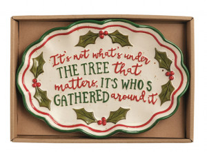Hand-painted speckle stoneware tray with scallop edge. - Additional Information