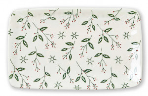 Celebrate the holiday season with this classic Tis the Season Rectangular Platter. Made from stoneware, this platter features a timeless design with green holly leaves, perfect for serving up festive treats. - Additional Information